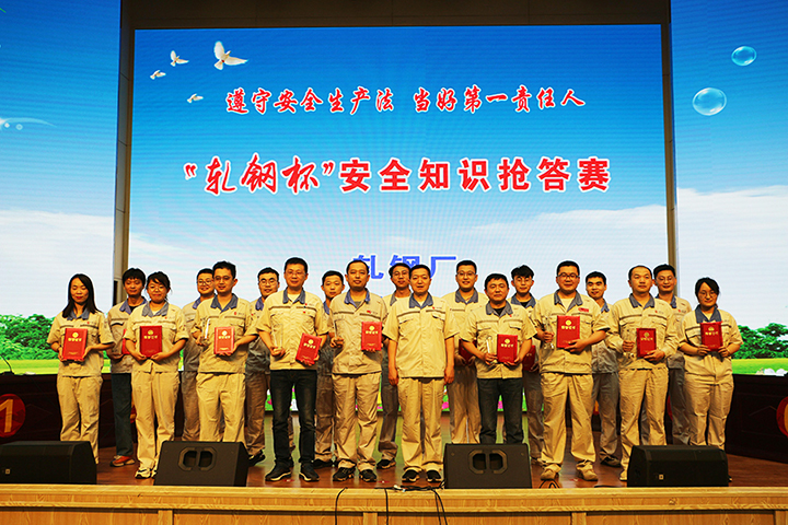 5月28日,轧钢厂在职工礼堂举办安全知识抢答赛。比赛共有14支代表队参加,轧钢厂各车间主任和安全员作为选手参加比赛。比赛分预赛、决赛两个阶段,内容包括安全、消防、精益安全管理规章制度及相关知识、应急预案、企业文化等。