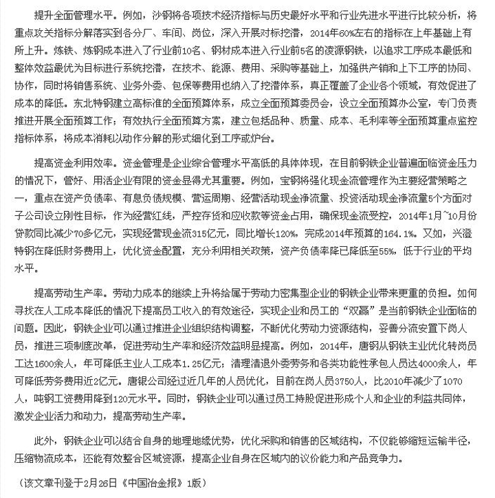 上一篇: 全国钢铁行业8月PMI升幅收窄 终值47.6     下一篇: 钢铁要重当“高富帅” 必须得走精细化高端路线了