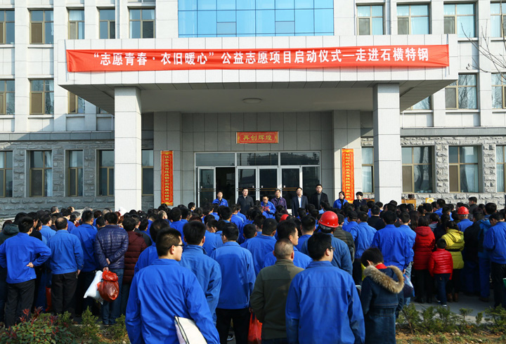 在启动仪式上,公司团委发出倡议,动员广大员工、家属捐献衣物,将温暖和真情传递,展现石特员工、家属的善心和爱心。肥城市委办公室副主任、市扶贫办主任张阴明为仪式致辞。肥城市政协副主席邹家强宣布项目启动。随着威风锣鼓队的精彩表演,“志愿青春•衣旧暖心”公益志愿项目拉开帷幕。活动吸引了很多热心员工、家属的募捐,来自集团公司、石横镇以及石横义工的30余名志愿者组成6组“流动募集站”,同时进行募捐登记。沉甸甸的衣物,融汇了集团公司员工浓浓情谊;小小的善举,用实际行动向需要帮助的人们送上绵绵心意。